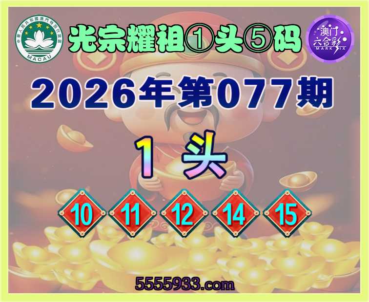 077期: 光宗耀祖 ①头⑤码【1头主:10.11.12.14.15】开:00准